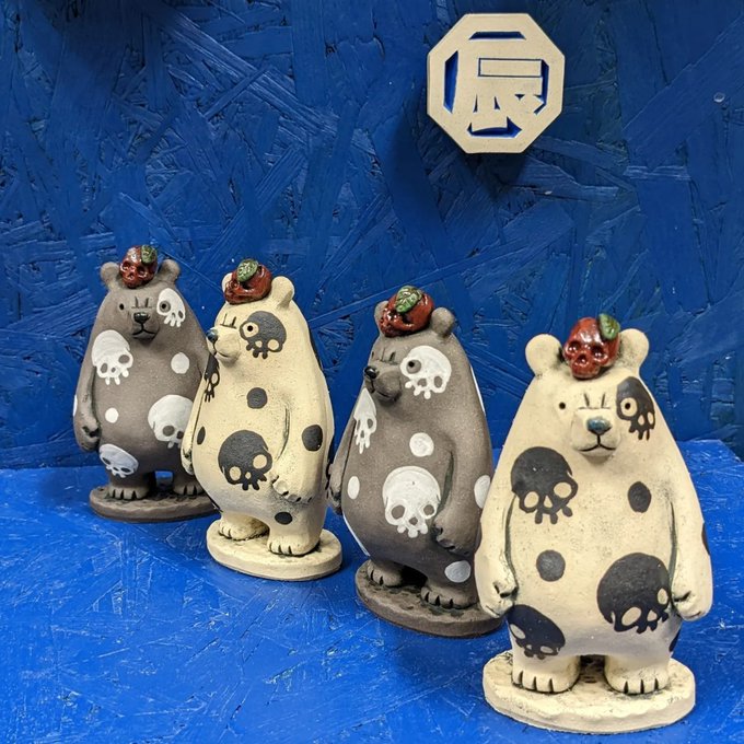 可愛いから怖いまでを、たまに平面、主に立体…陶芸やってます(人 •͈ᴗ•͈) #画像を4枚晒したらrtがきてフォロワーがぶわーって増えると聞いて