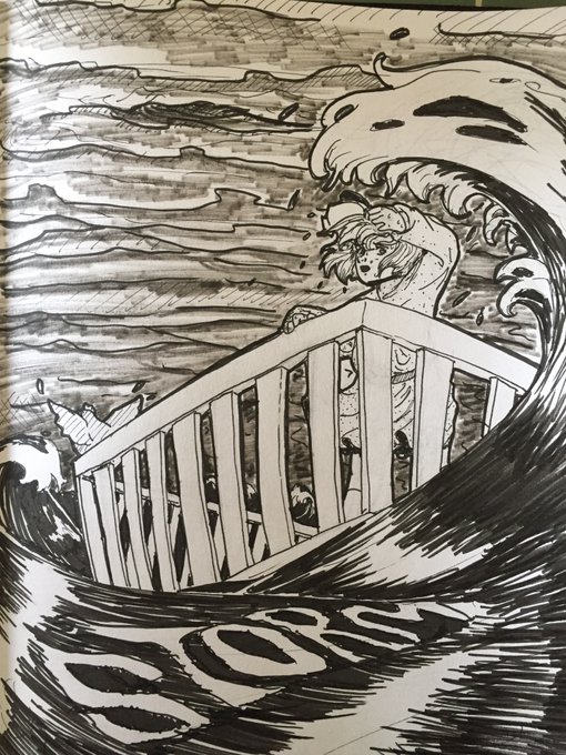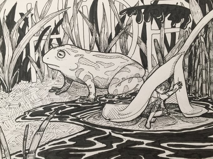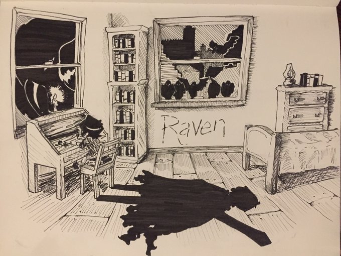 #Inktober Day 5: #Raven. Here is a young Fakia staring down the monster raven from #PrincessTutu.