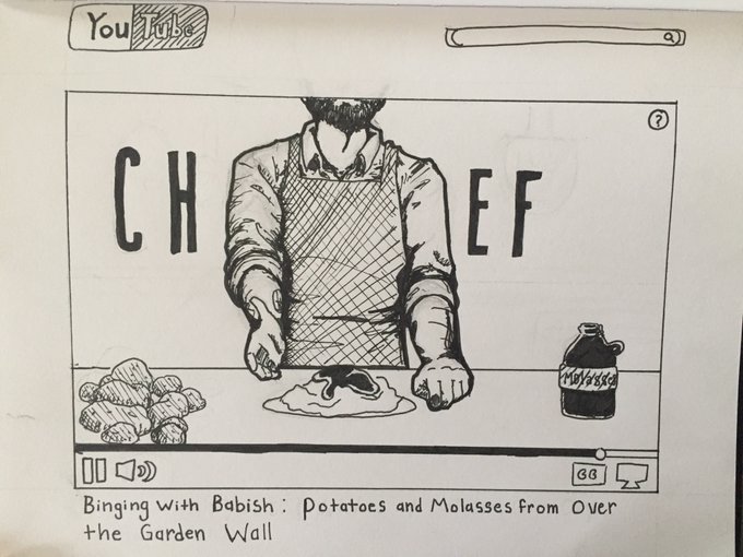 Someday, @BingingWBabish will grant my dearest wish and attempt to redeem the nonsense combination of potatoes and molasses. #Inktober day 22: #Chef #Bingingwithbabish #Overthegardenwall