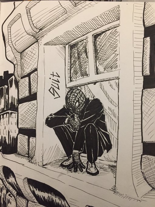 #inktober day 2: #suit. Basically, everything I see from @BluDragonGal makes me want to be a better artist, and #SpiderMan is forever associated with her fantastic work in my mind. A friend gave me the idea to do a double suit--not sure how well it came out but it was fun to try.