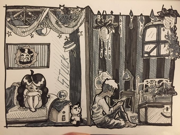 #Inktober Day 12: #stuck Falling behind, but that's okay. #BeeAndPuppycat is a major comfort show and I want to make everyone watch it. I once assigned it for a guest lecture in a pedagogy course and I dream of writing a paper on its economic commentary.