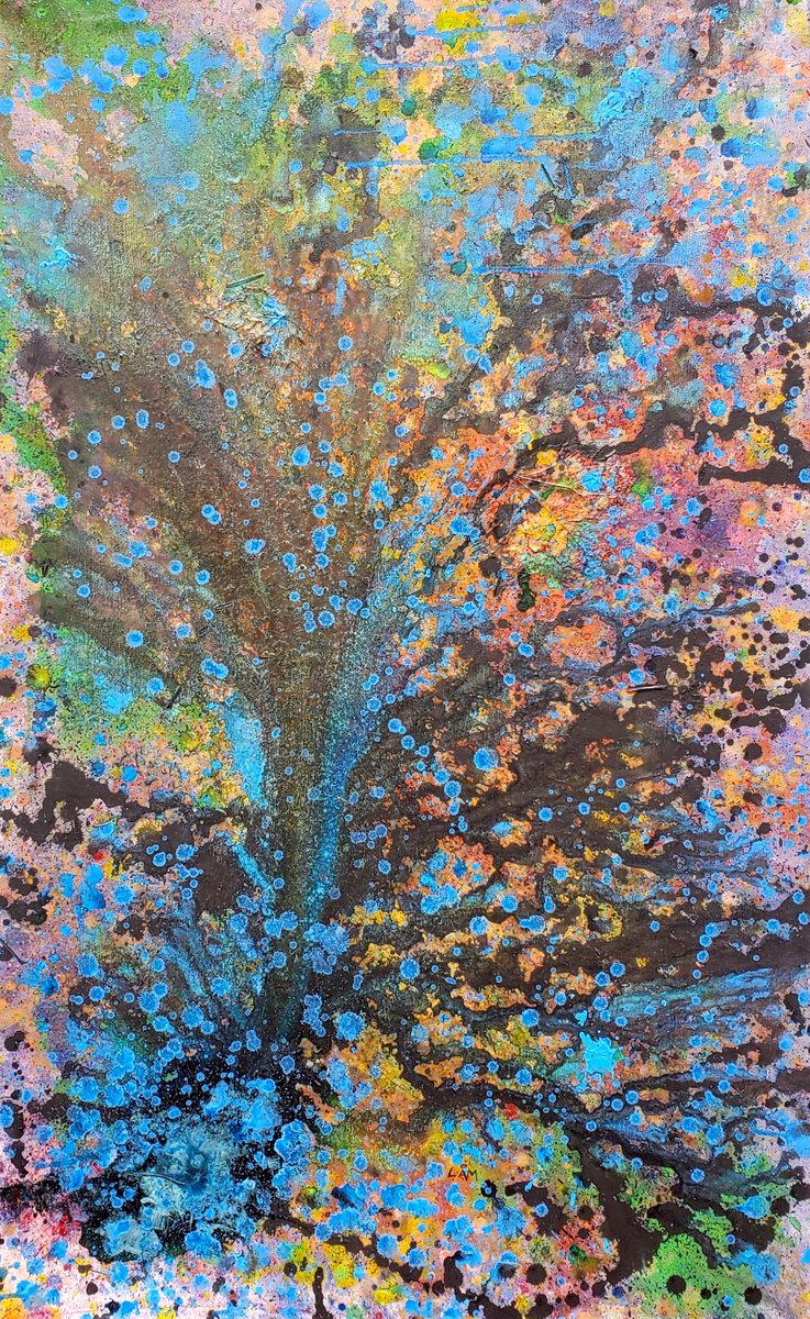 'Vibrant Nebula' Rain Painting (created in the rain- over 40 layers of paint over 6 moths or more) #painting #artists #abstractart #art #acrylicpainting #artistsontwitter