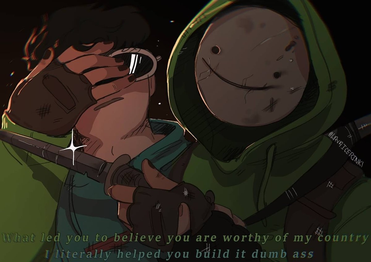 ☆ What led you to believe you are worthy of my country ♡ I literally helped you build it dumb ass #dsmp #dnf #dreamwastakenfanart #georgenotfoundfanart #dreamnotfoundfanart