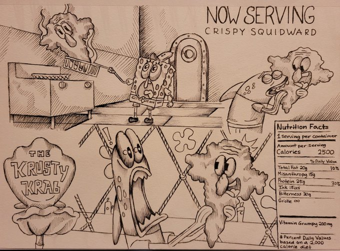My @inktober for today: #crispy #spongebob #art #artistoninstagram #artist #inktober2021 #inktober #squidward #sbsp #sketch @spongebob