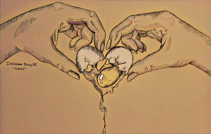 @inktober Day 25: #splat #art #artist #artistoninstagram #hands #egg #yolk #inktober2021 #inktober #metaphor #heart #heartbroken