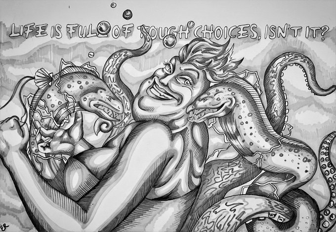 My #inktober2022 offering for today: #scallop. . . . #ursula #LittleMermaid #art #artist @inktober