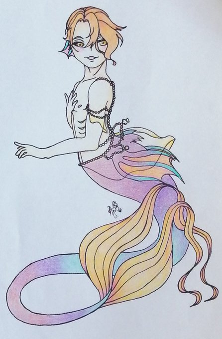 Thought we draw Asmo as a mermaid, happy mermay and also happy early birthday Asmo! #obeymeasmo #mermay #Mermaid #Siren #Tropicalcolours