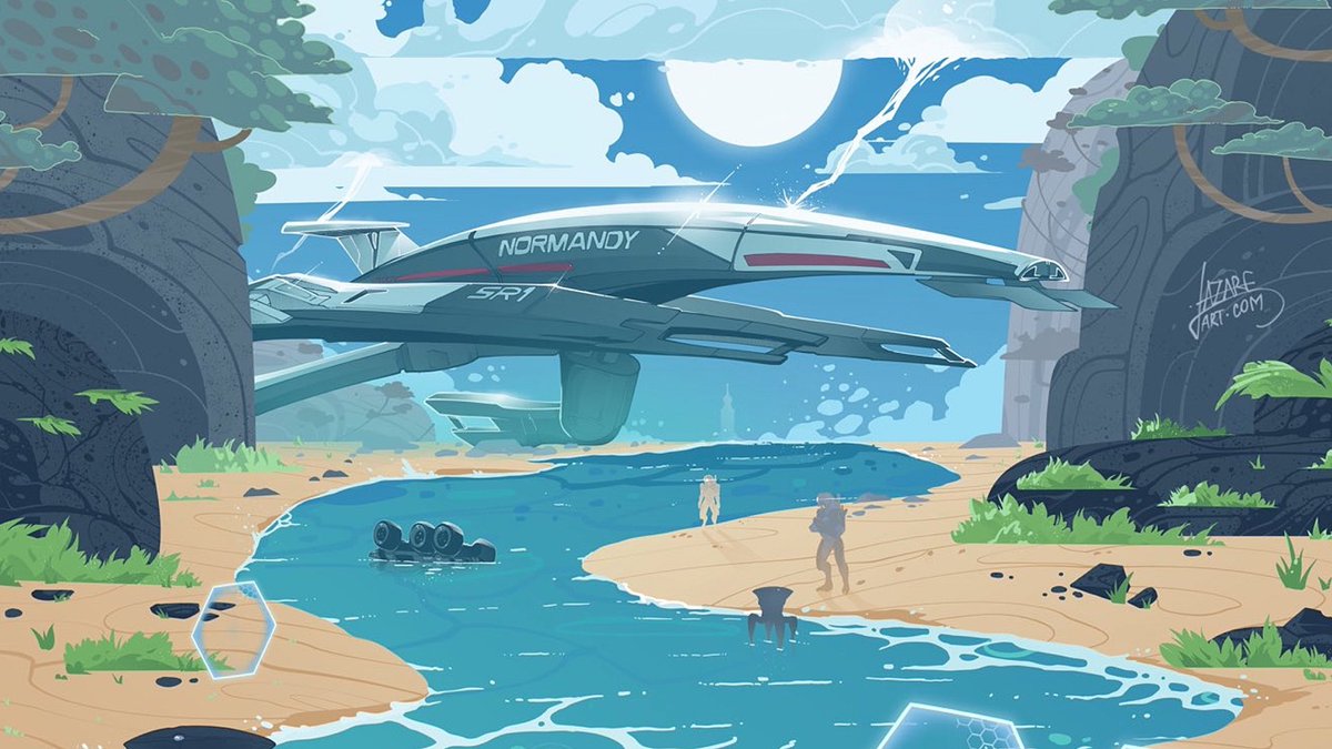 Here's a surprise for #N7day that I worked very-very hard on in order to make it in time. Commissioned as always by the wonderful @swaps55 as the latest entry in our ME1 destinations series, it features beachy vibes and crabby crimes on sunny Virmire 🏝♥️ #masseffect #n7day2022