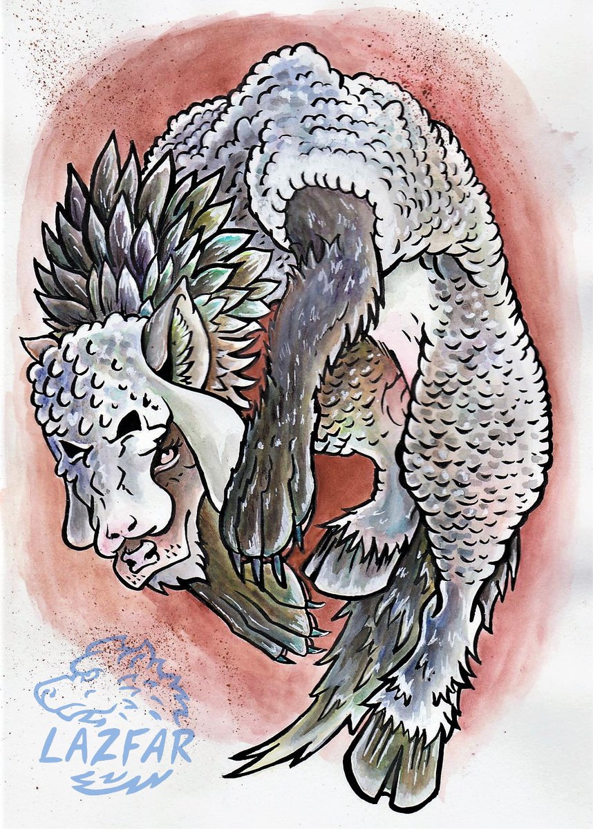 Yet again going through a lot at the moment, but wanting to be more positive, and since #artistsontwitter is trending, I'll be uploading 2 of my finished pieces from the #LibrumProdigiosum project. This is Amarok, the wolf creature from Inuit legend.