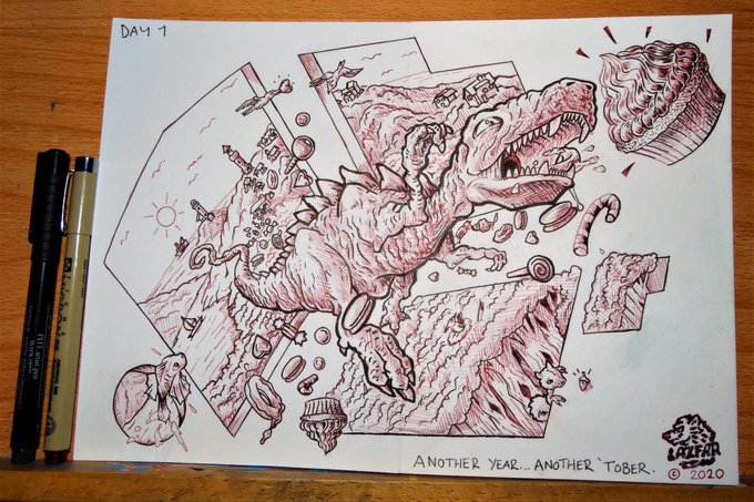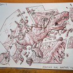 My 3rd #WIP set for #LibrumProdigiosum. I have 1 more drawing to share after this. Monsters drawn here are Karakoncolos and Mantahungal. I now have all roughs inked and ready for colouring! 😀 Wish me luck, all. #art #artistsontwitter #illustration
