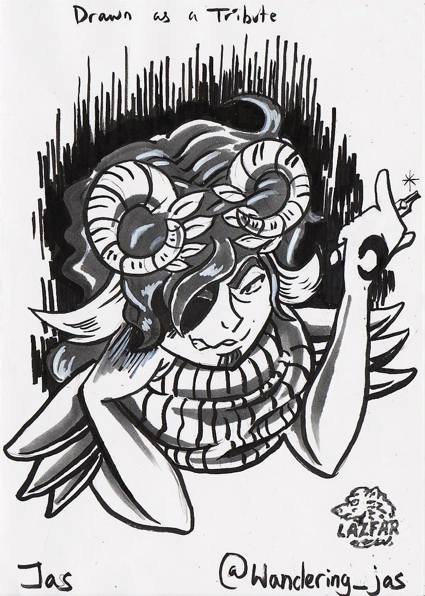 My last minute attack to @Werewolfgao to say thanks as they were the first ever to attack me on Artfight. Character drawn is Hunter Stripe. Artfight is ending soon. If you still wanted to see my profile page, it's artfight.net/~Lazfar. Cheers! #art #artfight #artistsontwitter