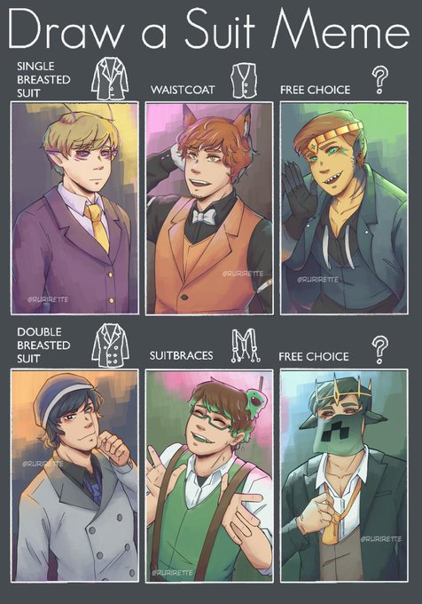 The Las Nevadas crew in Suits! Err y'know... before the betrayal and stuff. #purpledfanart #fundyfanart #foolishfanart #quackityfanart #slimeciclefanart #awesamdudefanart