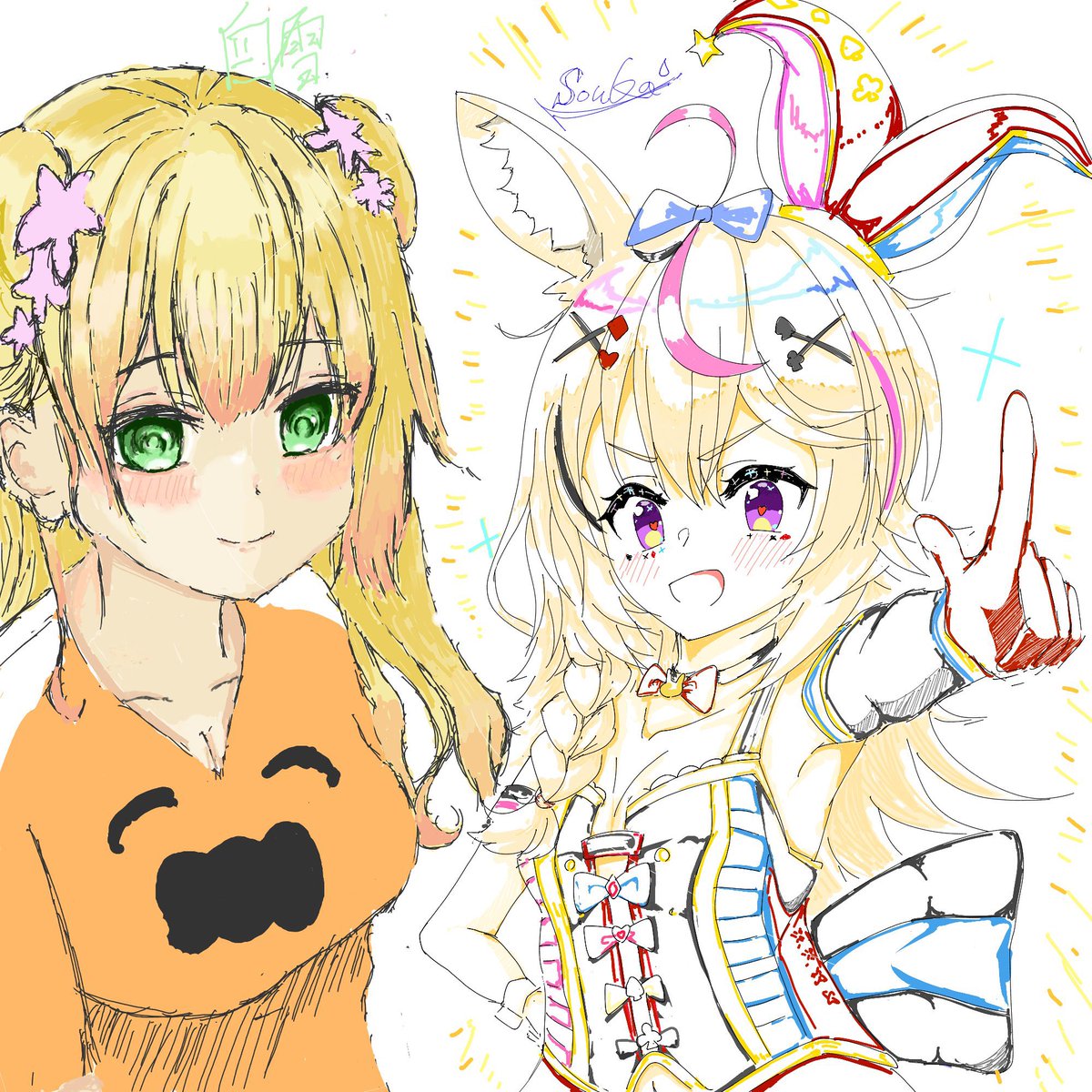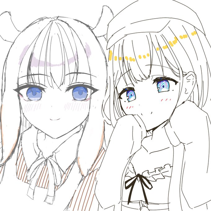 友達と絵チャしてました~〜( ˶ ̇ᵕ ̇˶) 左:自分 右:@minazumi_souka (友達) #ねねアルバム #絵描きさんと繋がりたい