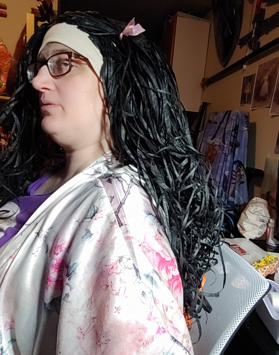 Finished #WeiWuxian wig! Styled from a Kasou wig. Fixed the half ponytail, added sideburns using felt and glued wefts harvested from the back of the wig. Added lace to the side to glue hair down Man c-drama wigs have some serious sideburns! #TheUntamed #cosplay #MDZS #mxtx