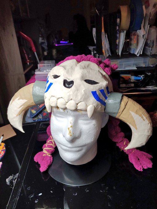 Link's skull hat! All the chenille hair is added and tied off with faux suede cord. It's so soft! #BreathoftheWild #cosplay