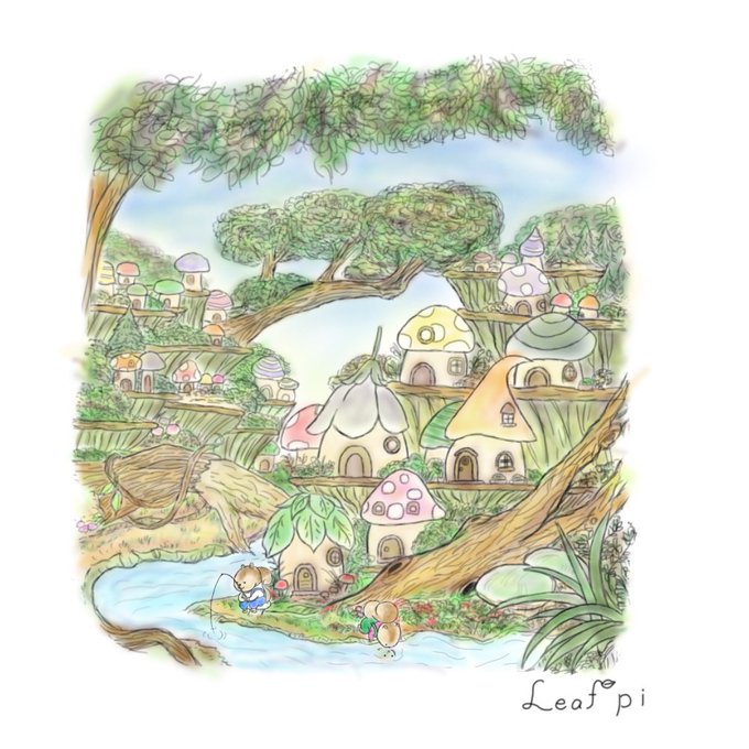 3 4 「mushroom town〜きのこの町」 #Leafpi2022 #イラスト #illustration #paint #絵本 #ゆるかわ #イラスト好きと繋がりたい 23/01/22 07:34