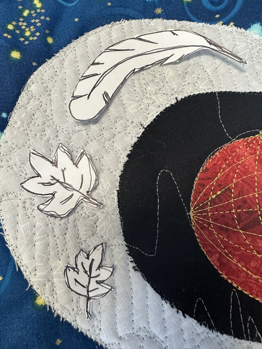 #criticalrolespoilers The fifth one taking shape. Black feather and red/orange leaves, obviously. What to call this one? APOGEE: Sacrifice ? #miniquilts #wip #criticalroleart