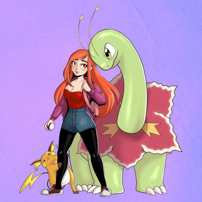 Avanzando lento pero seguro, seguimos con mis subs de twitch como entrenadores Pokémon y esta vez tocó @HeyShika 💖 una de mis personas favoritas para dibujar uwu Parte del dibujo lo hicimos en stream 💖💖 twitch.tv/lechuzaypezdel… #illustration #digitalart #pokemon #digitalart