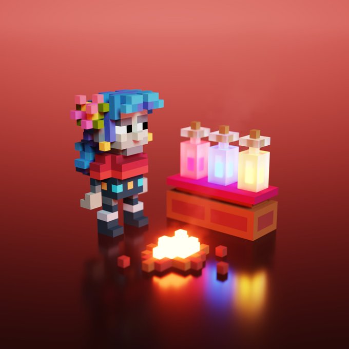 Spent a few days with VoxEdit and I have a pretty good feel for it now! These are made from the included templates but the rest seems intuitive - looking forward to making more :) #voxelart #Thesandbox #voxedit