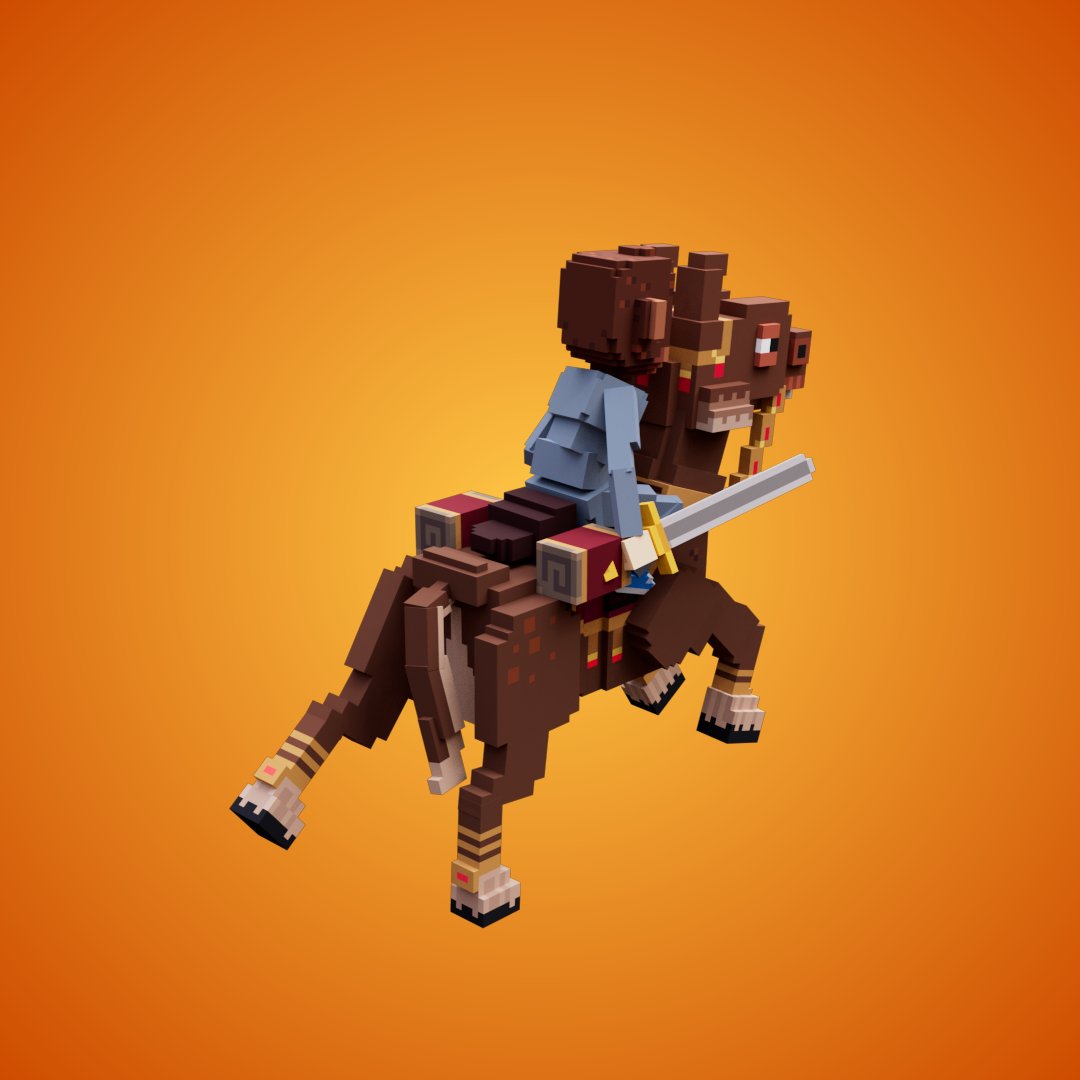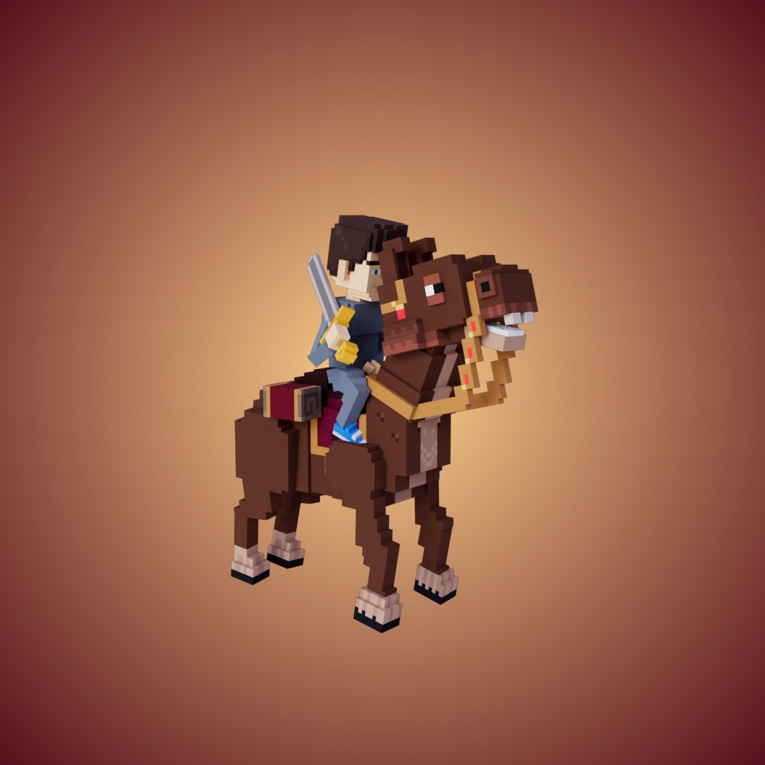 🐎Rendered out some images of my donkey-thing, made using the mount template in @VoxEdit #VoxelArt #GameArt #LowPoly #VoxEdit #TheSandbox #CharacterArt