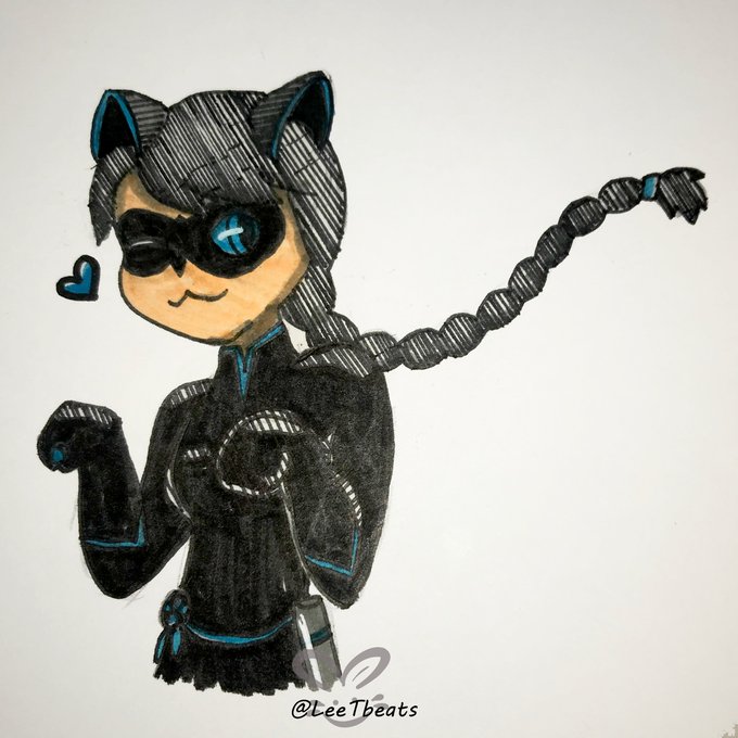 But what if she was Blue? (inktober day13) Lady Noire Miraculous: Tales of Ladybug and Cat Noir #inktober #inktober2020 #MiraculousLadybug #miraculous #ladynoir #fanart #traditionalart #marinettedupaincheng #neko #cat