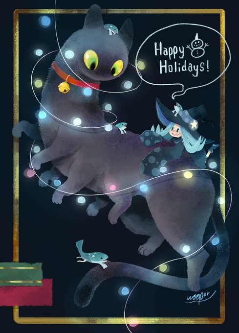 10 30 見習い魔女ちゃんと大きい猫でMerry Christmas!🎄 #MerryChristmas #illustration 22/12/24 11:16