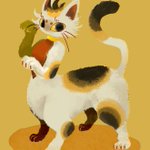 #人外版深夜の真剣お絵描き60分一本勝負 お題「“縁起物”から連想する人外」 時間外参加です 招き猫タウル🐈