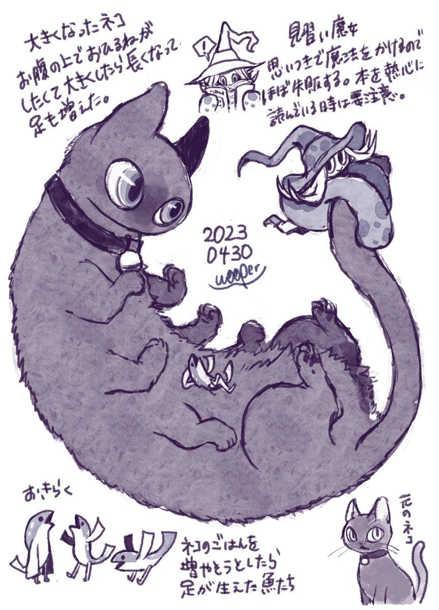 0 9 今日のらくがき 大きくなったネコと見習い魔女 23/04/30 19:55