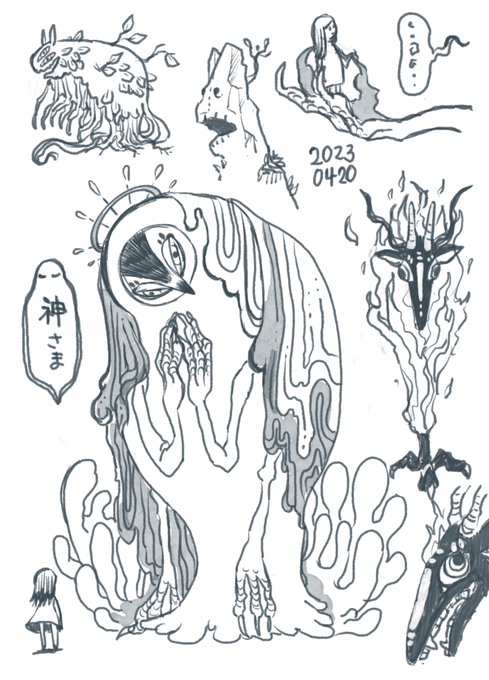 1 4 今日のらくがき なにかの神さま 23/04/20 20:43