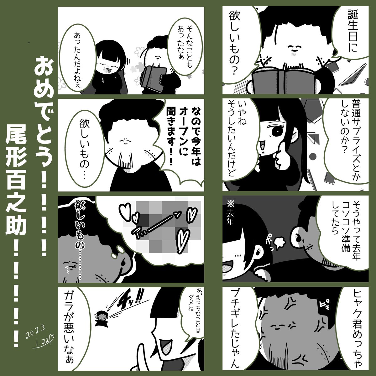 3 18 毎日楽しいを更新してくれて ありがとう😭㊗️ おめでとう㊗️🍾🍾🍾 #尾形百之助誕生祭2023 #尾形百之助生誕祭2023 23/01/22 23:14
