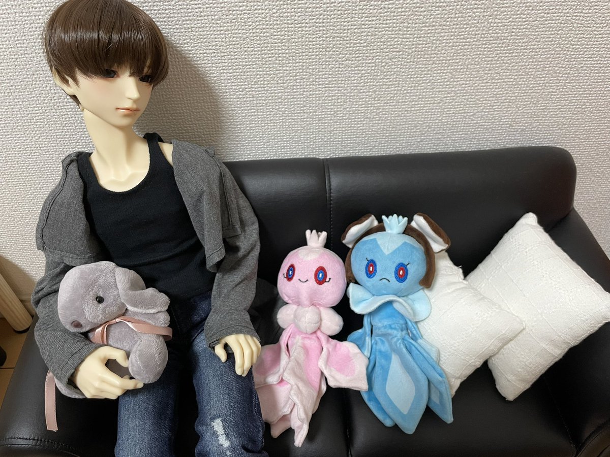 #おはドル ございます 出社したくなかったけどイヤホン爆音音楽+うちのこ写真を見ながら気力で出社だぜ これは 主の持ってきたぬいぐるみでソファーがどんどん狭くなっていくけど ぬいぐるみは処分したくない宗太くん