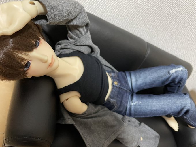 #おはドル ございます ソファーに寝かせるだけで急にリアルっぽくなるのとても良きですな🤤 今日は帰って時間があれば イドルで入手した服とかを早速着てもらいたいと思いまつ😉