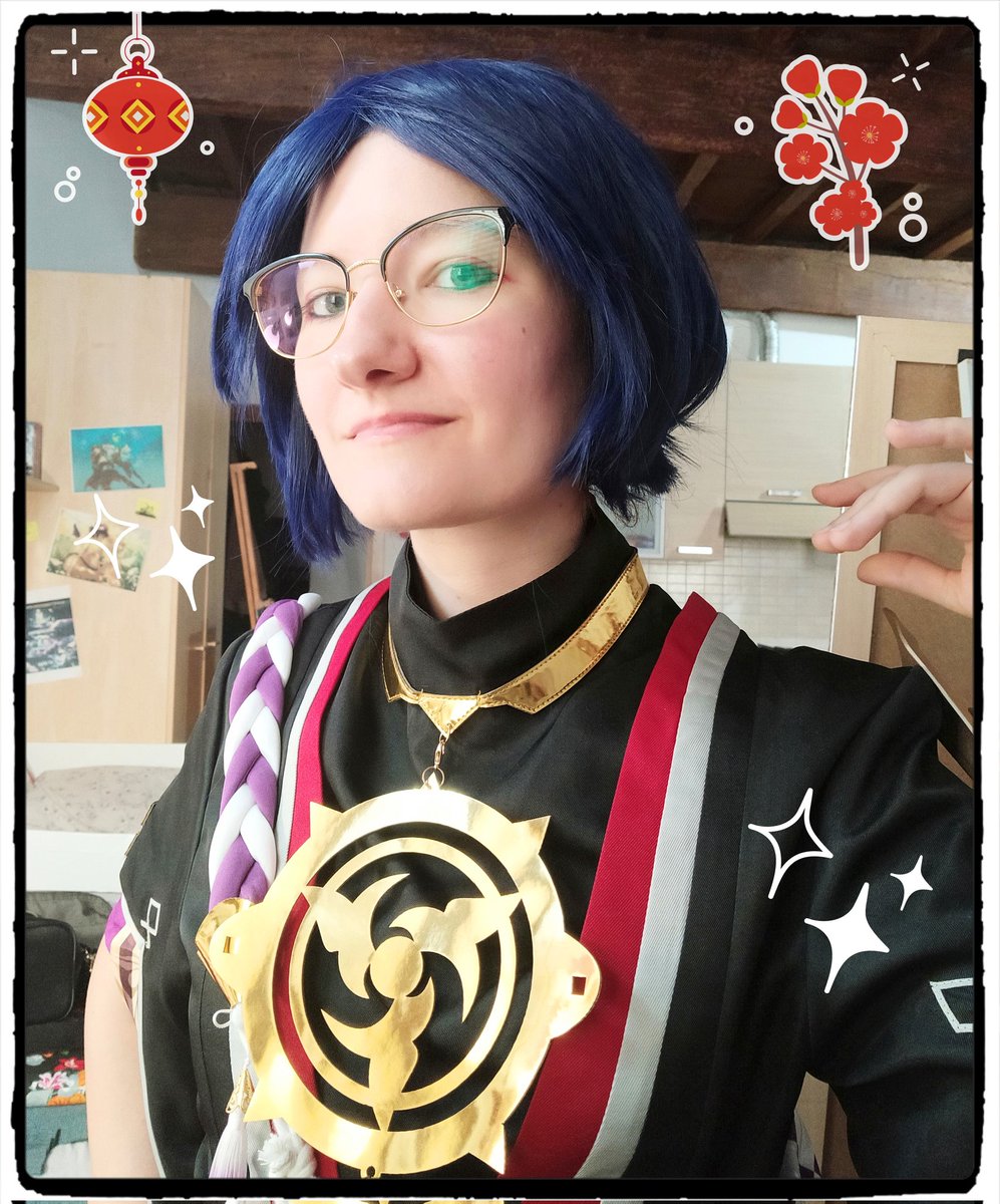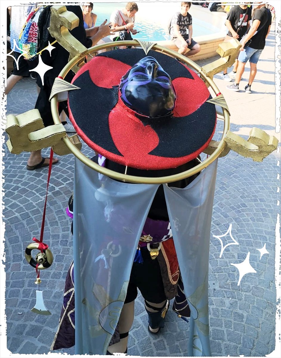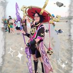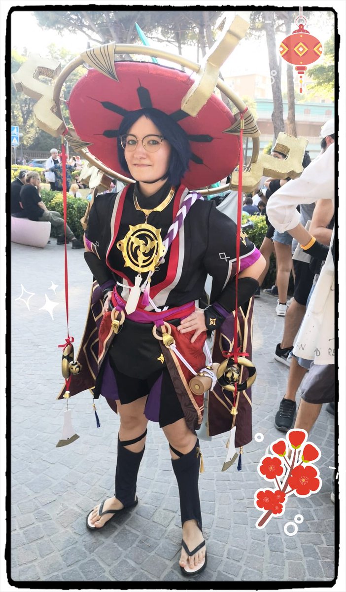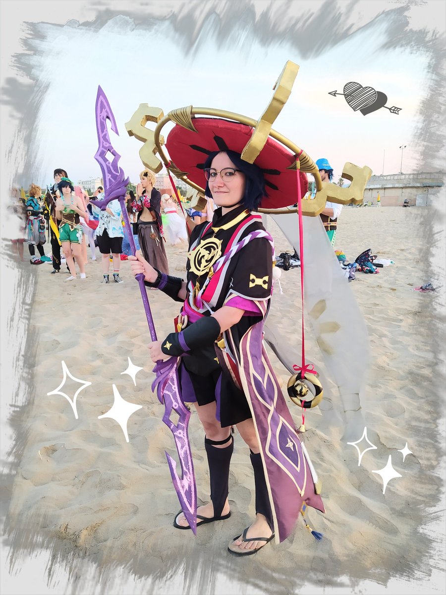 I bought the costume online but made the hat by myself since I couldn't afford it 🙈 In the first photo a kind Childe lent me his weapon 😂💕 #scaramouche #GenshinImpact #cosplay #GenshinImpactcosplay