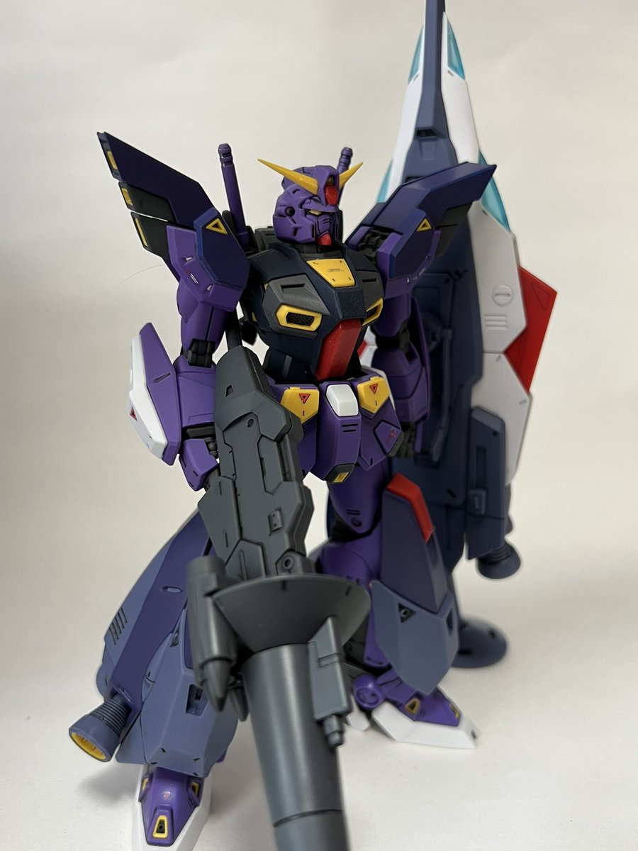 出来たー! F-90 2号機 Iタイプwith核弾頭 そのままの青だと流石に合わなかったので コバルトブルーに赤少々の適当パープルで塗ってみました 思った以上に似合ってるのでは!? #ガンプラ #ガンプラの画像貼るとRTされると聞いて