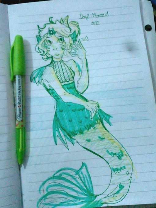 Day 2: Mermaid. List of: @jacqets #inktober2022day2 #Inktober #Day2 #arte #traidional #iwilldoitthistime #green #myartwork