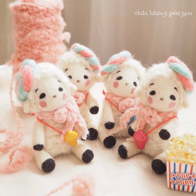 ちびひつじ劇場🍭 ペロペロキャンディ風のベレー帽🍭 ピンクのふわふわマフラー&ソフトクリームのポーチでお菓子の国のちびひつじさん完成ですっ🍦💝✨✨✨ Creemaで販売中🤗💕 ぜひ覗いてみてくださいね♡ #羊毛フェルト #Creema creema.jp/c/Lemonade5