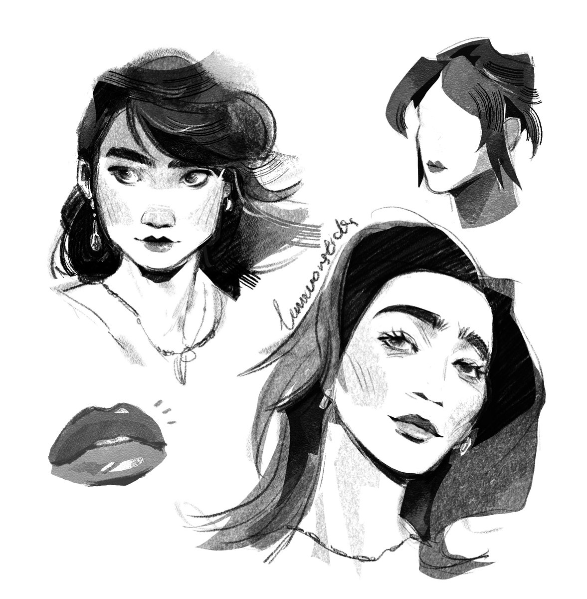 More drawtober sketches that start with 'Black is the colour of my true love's hair' #doodles #sketches #procreate