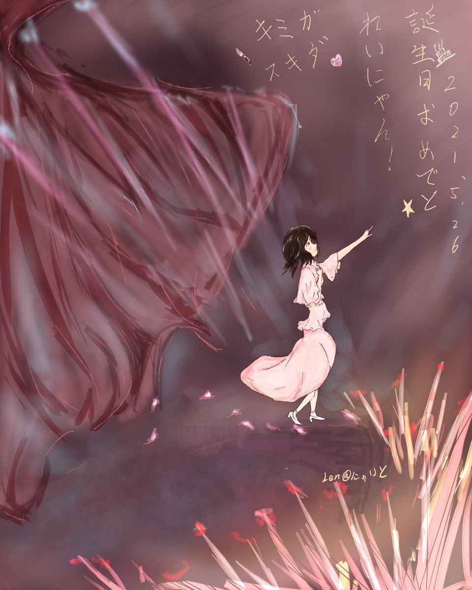 姫、お誕生日おめでと〜 ちょうと舞台上のれいにゃん描きました! これから私もずっとにゃいとの役になりたいから、もっと頑張れ! #ナナニジ #にゃんしよーと #宮瀬玲奈生誕祭2021 #宮瀬玲奈