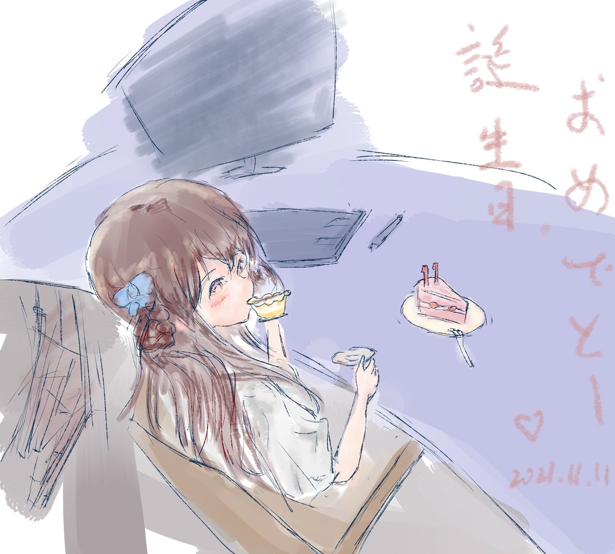 姫、お誕生日おめでとー! この一年間、にやんしよーと毎回毎回楽しいし、ライブの姫の姿も期待し、舞台演出も好き!大変な事もあるけど、未来があるから、来年も応援してます! (ゲーム配信から、ゲームして、寝ちゃたな姫描きました(//w//)) #ナナニジ #にゃんしよーと #宮瀬玲奈生誕祭2022