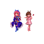 2周年記念を2週間遅れで投下していくスタイル。 私の母君ことみと椿ママの活動2周年祝いで割と気合を入れてドット絵こしらえてみたぞ~🐰✌️ #みと椿あーと