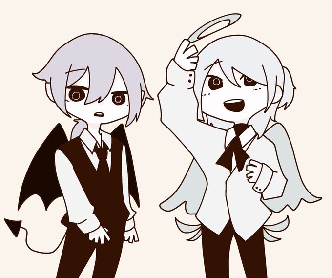 2 19 #イラスト #創作 天使と悪魔です!! 23/03/24 19:51