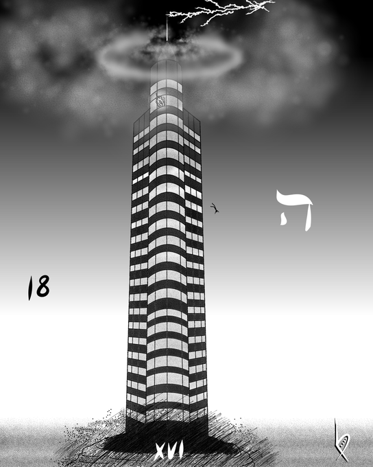 #Inktober2022 day 18, prompt #Scrape tarot card #TheTower #digitaldrawing #digitalink #illustration #inktober #inktoberchallenge #digitaldoodle #tarotcards #skyscrapper