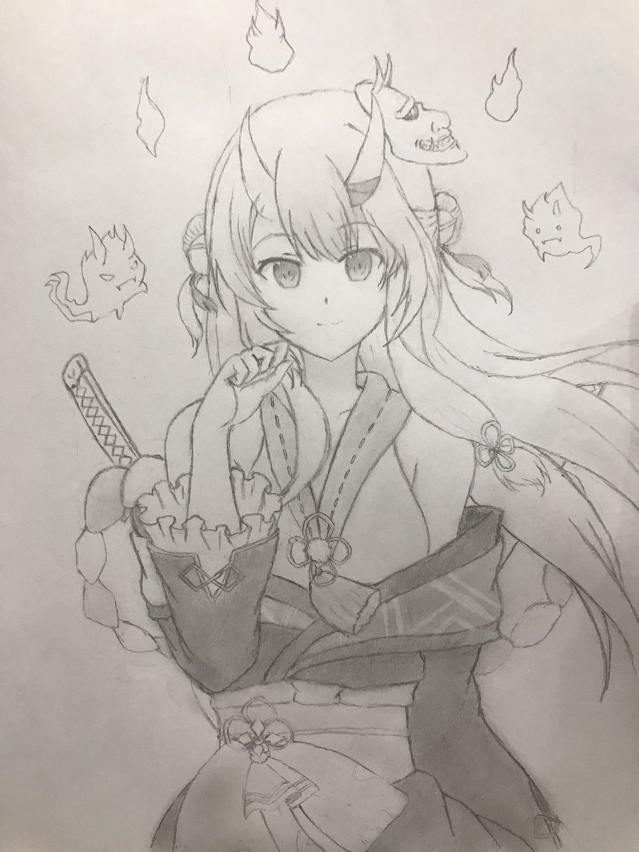 ミオちゃん、2周年おめでとう🎉🎉 #大神ミオ2周年 #みおーん絵 #ミオかわいい