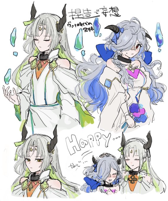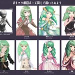 #キャラ構図ポーズ同じで描いてみよう 7人で衣装別のフレンちゃんを描いてみました!7色のフレンちゃんをお楽しみください🌈✨