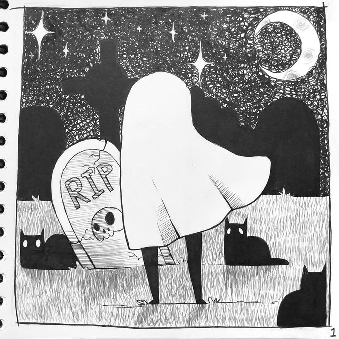#Inktober day 1 I wasnt sure if I was going to be doing #inktober2020 but wanted to explore the grieving process through a comic. I'm not following a prompt list and each day will be 1 panel instead. I'm uploading every time I finish a page so look our for the next one on Sunday!