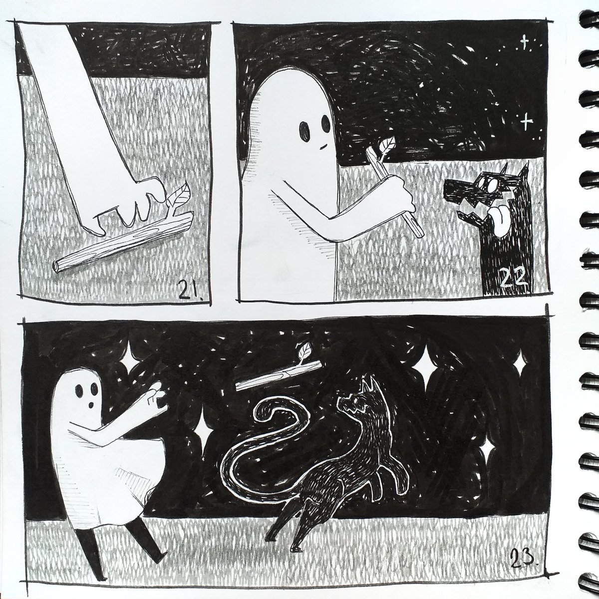 The next two pages of my version of #Inktober day 18 to 23. A new friendship is born. #inktober2020