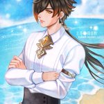 Happy Birthday #Xingqiu ! I made matching piece with last month #Chongyun BDay art 😚 #原神 #GenshinImpact #Chongqiu #xingyun #原神イラスト #行秋 #原神_キャラ生誕祭 #行秋生誕祭2021