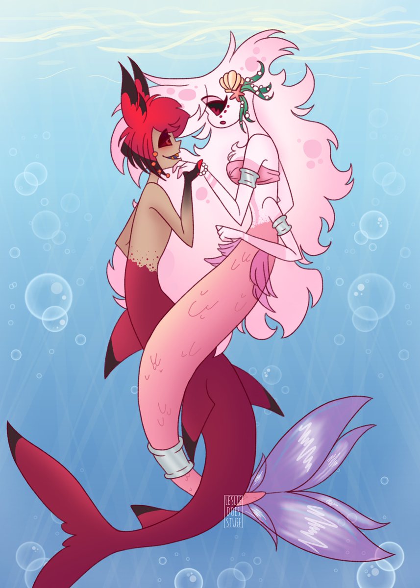#RadioDust #Mermay! OwO The designs aren’t mine since I can’t draw good mermaids but here are these wonderful ppl who made them! Mermaid! Angel: @16thAria Mermaid! Alastor: @cupnstraws #hazbinhotel #alastor #angeldust #mermaidau