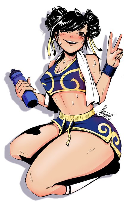 Thanks for hanging tonight gais. We had a very rare very happy art stream OWO/ heres chunli pre workout 🥰 #Chunli #StreetFighter
