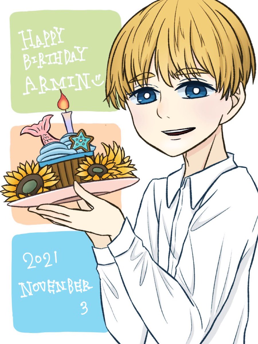 今年も誕生日おめでとう!!!!!君は本当によく頑張った!!!長い長い物語が終わり、心からあなたが好きで良かったと思っています。これからの未来、少しでも多くの時間信頼できる人たちと笑いあって過ごせていますように!好きだ!!!!!!!!!!!! #アルミン生誕祭2021